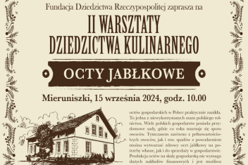 W XIX wiecznym siedlisku w Mieruniszkach, w otoczeniu blisko stuletniego sadu odbyły się warsztaty dziedzictwa kulinarnego wytwarzania octów jabłkowych.